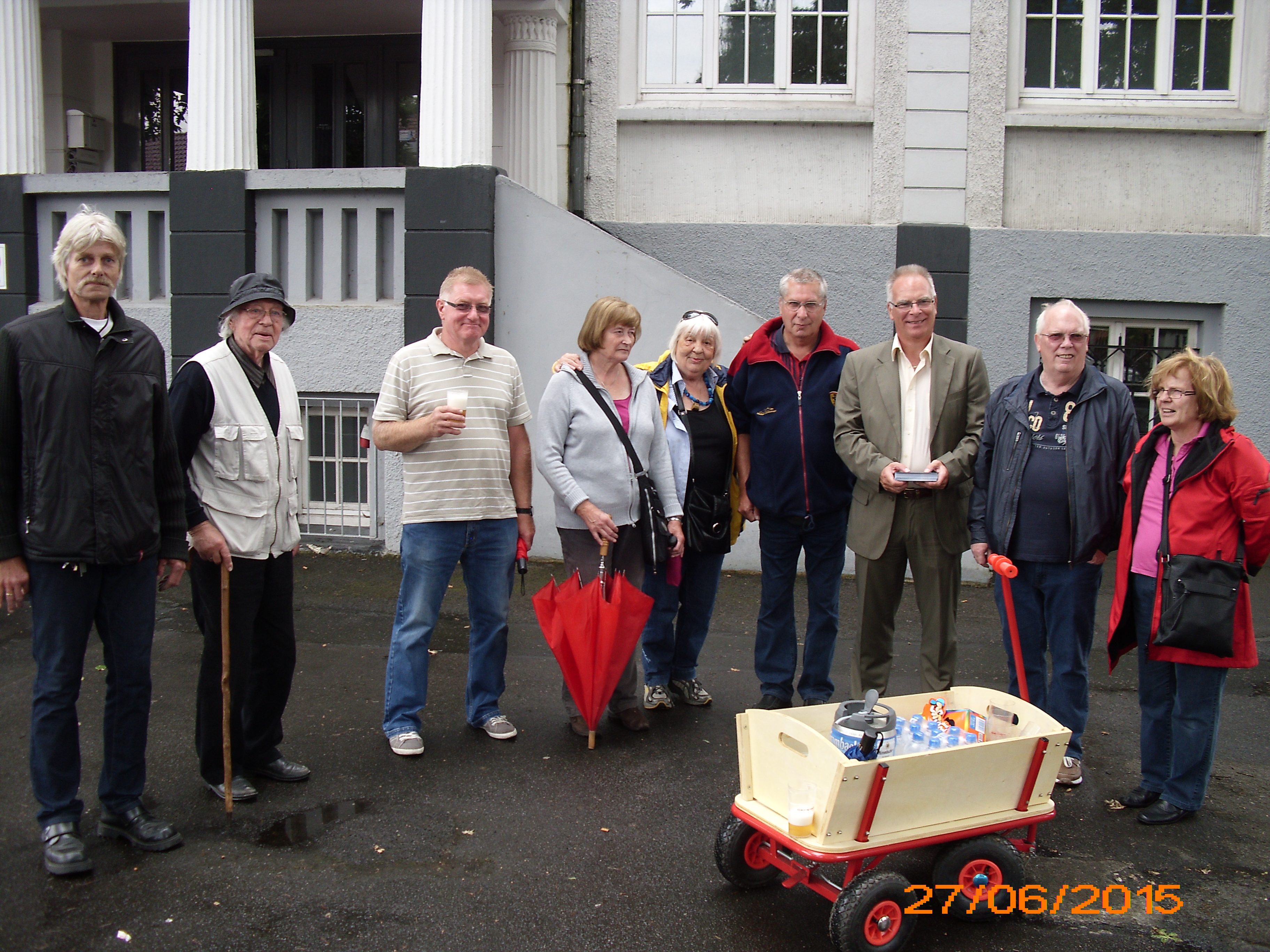 Die diesjährige Wanderung des SPD Ortsvereins Lünen-Süd führt vom Bergbaumuseum, in der Bahnstraße, quer durch Lünen-Süd zum Preußen Hafen. Mit einem Handwagen mit kühlen und frischen Getränken, wurde als Gast SPD Bürgermeisterkandidat und stellv. Bürgermeister Rolf Möller begrüßt. Möller wanderte die gesamte Tour mit und führte mit Bürgern interessante Gespräche. Auf der Hälfte der Tour kehrte die Gruppe beim langjährigen Mitglied, des OVs Lünen-Süd, Herbert Stenzel und seiner Ehegattin Rosita ein. Nach ein paar gemütlichen und politischen Gesprächen, in dem Garten Stenzels, ging es zum Endspurt, zu dem Preußen Hafen. Dort eingekehrt gab es zum Abschluss noch einen kleinen Imbiss und als weiterer Gast kam Bürgermeister Hans-Wilhelm Stodollick dazu.